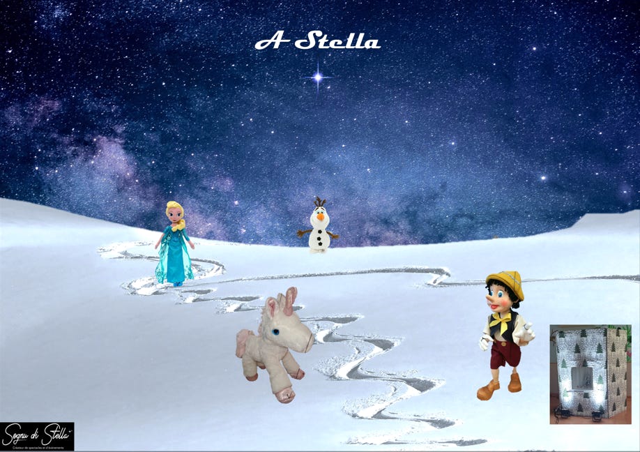 Spectacle animé par des marionnettes à fils et à main dans un véritable petit théâtre, conté, enjoué par la flûte traversière et le chant corse en Live.